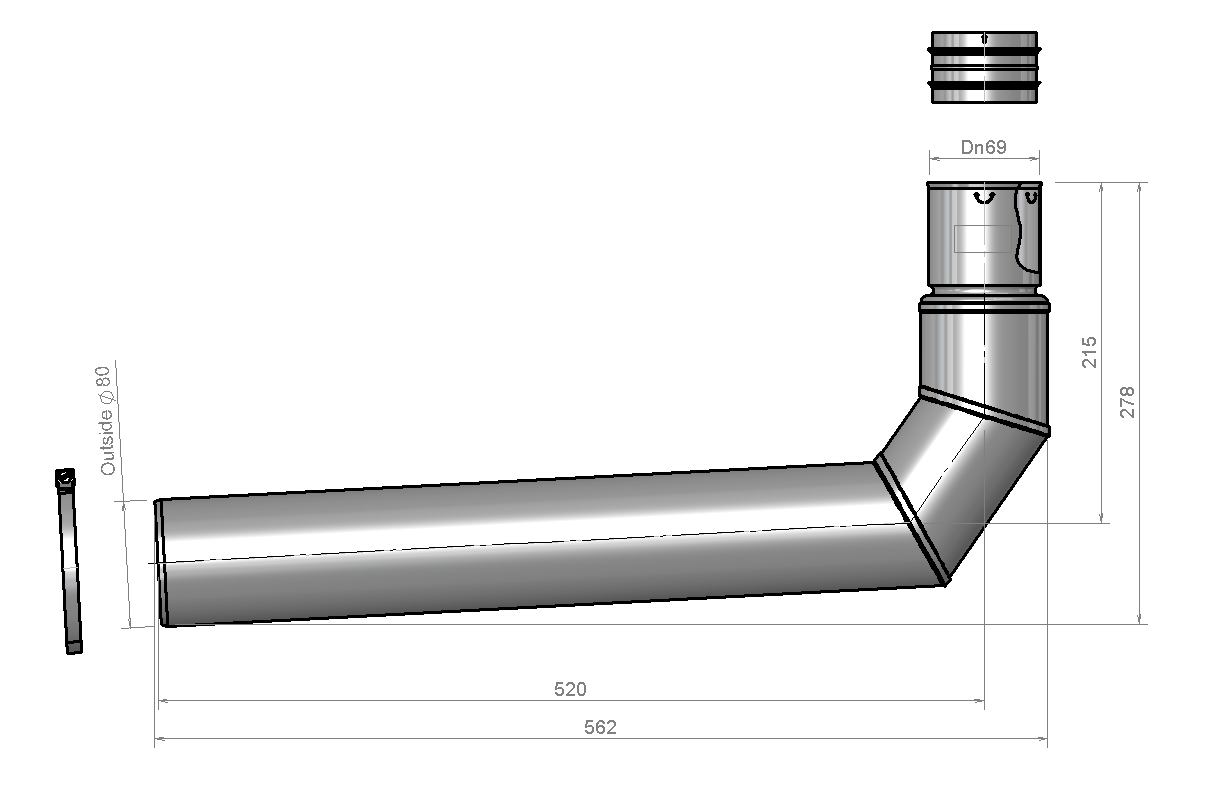 - Buitendiameter aansluiting 2: 69 mm