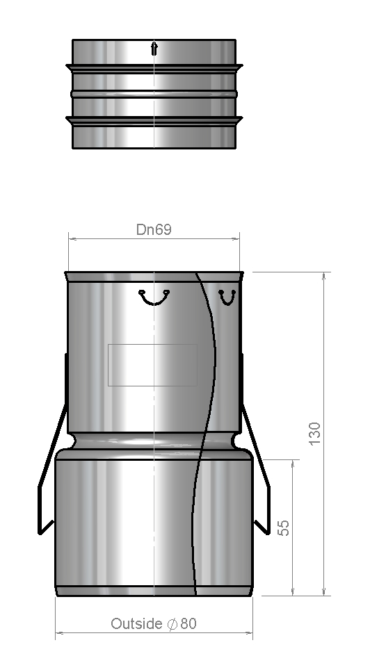 MetalFlex koppelstuk RVS 80-60mm spie-flex + klemstrip Burgerhout