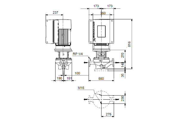 - Druktrap flens aansluiting uitlaatzijde: PN 16