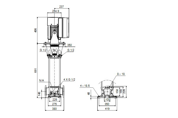 - Druktrap flens aansluiting uitlaatzijde: PN 16