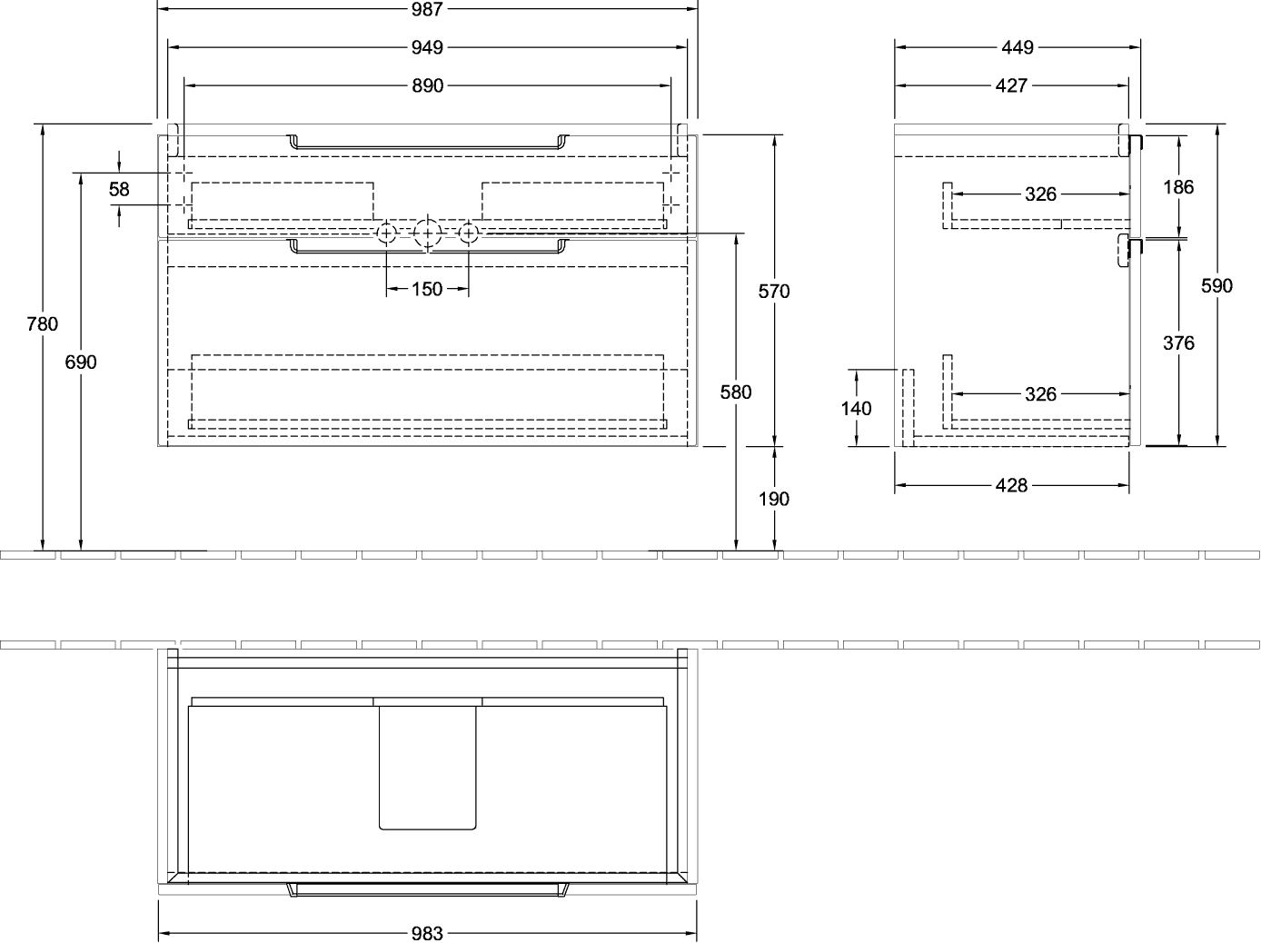 Wastafelonderkast Subway 2.0 987x590x449mm A91510FP Villeroy & Boch