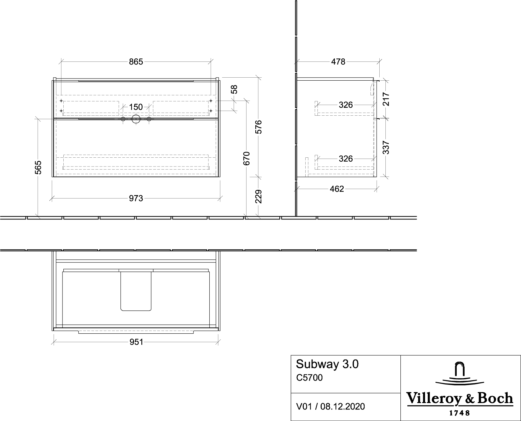 Wastafelonderkast Subway 3.0 973x576x478mm Oak Kansas C57001RH Villeroy & Boch