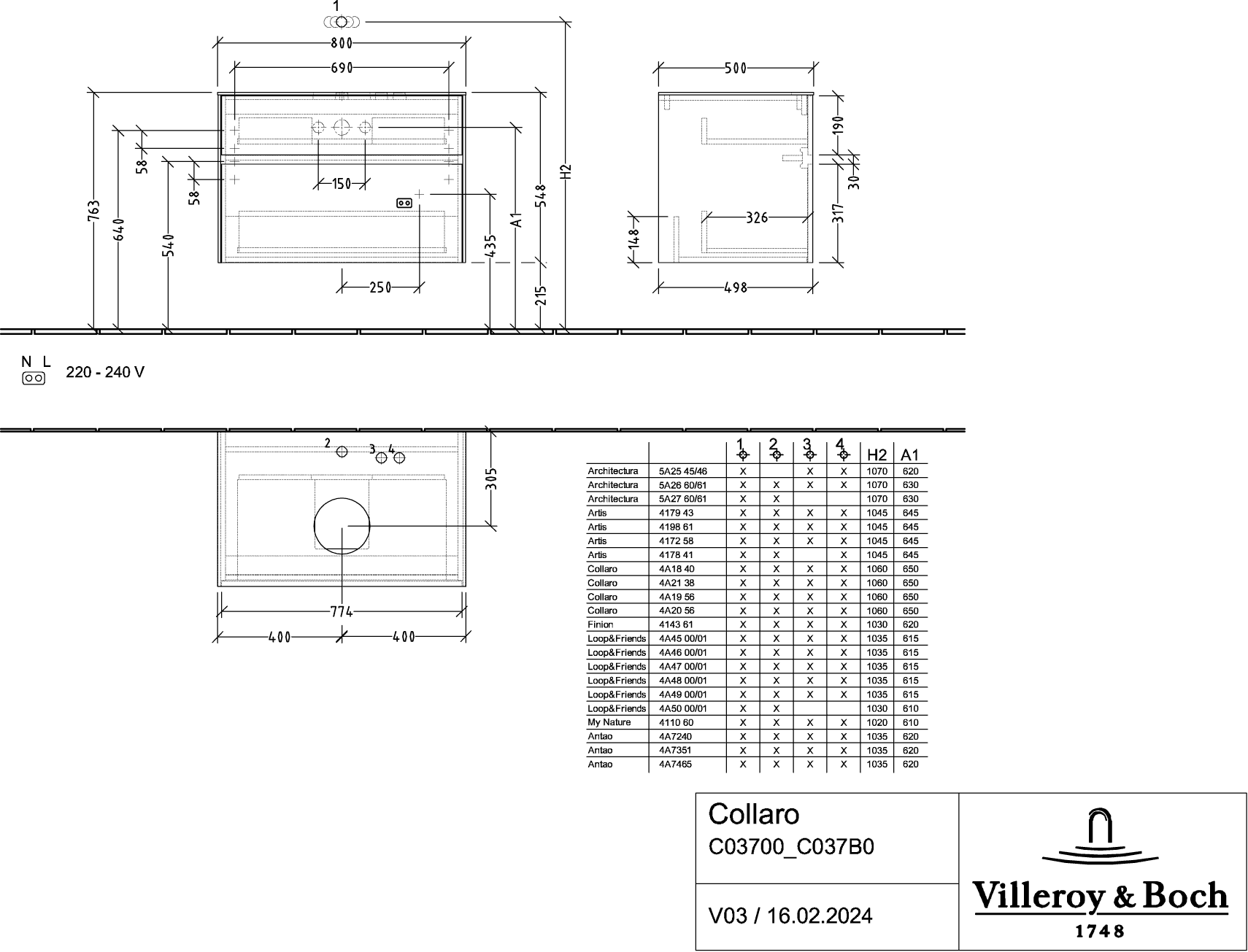Collaro Wastafelonderkast 800x548x500mm C03700DH Villeroy & Boch