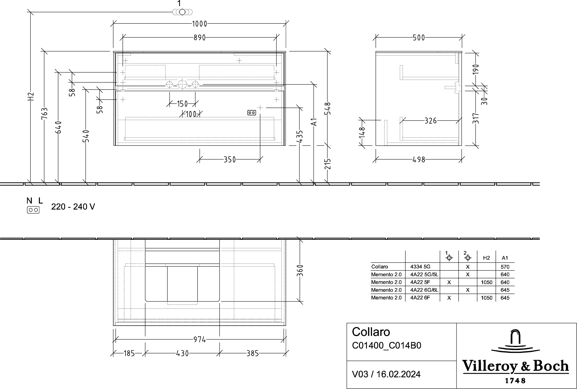 Collaro Wastafelonderkast 1000x548x500mm C014B0VH Villeroy & Boch