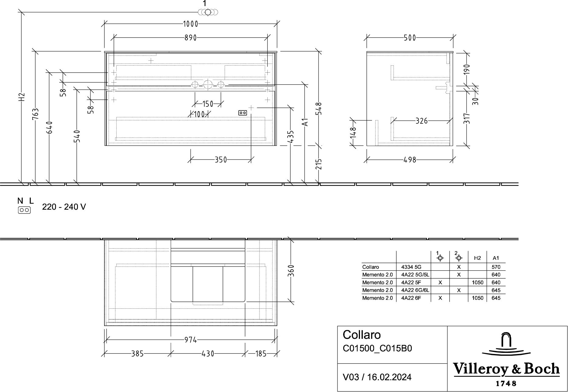 Collaro Wastafelonderkast 1000x548x500mm C015B0FP Villeroy & Boch