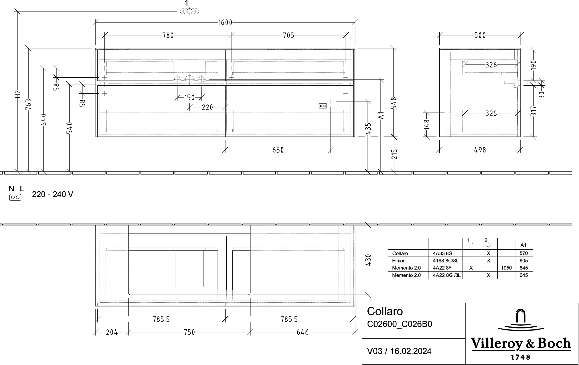 Collaro Wastafelonderkast 1600x548x500mm C026B0MS Villeroy & Boch