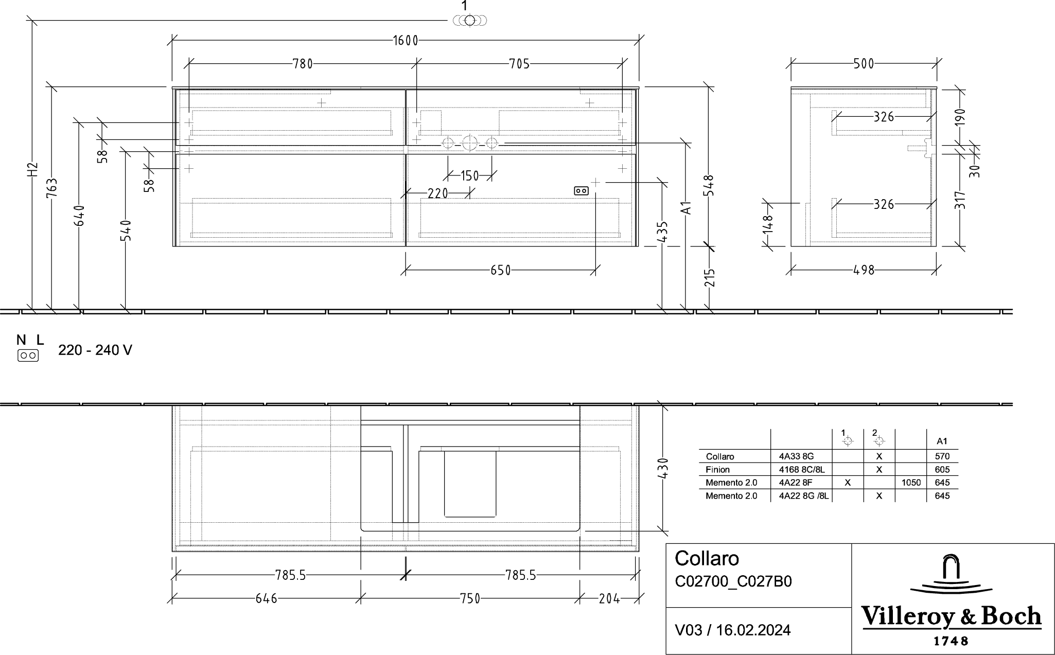 Collaro Wastafelonderkast 1600x548x500mm C027B0DH Villeroy & Boch