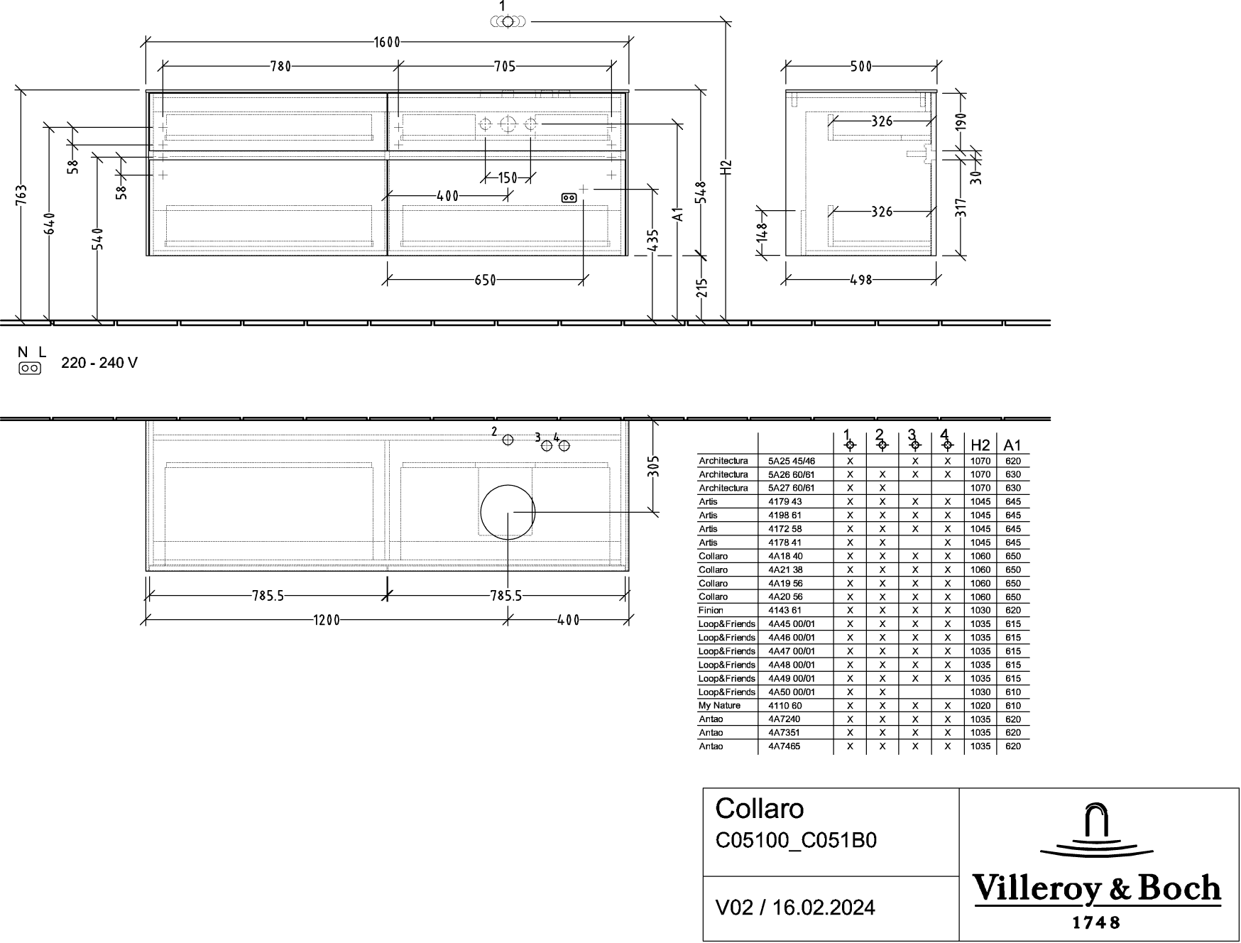 Collaro Wastafelonderkast 1600x548x500mm C051B0DH Villeroy & Boch