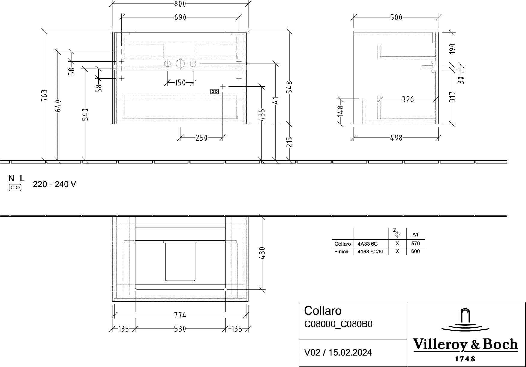Collaro Wastafelonderkast 800x548x500mm C08000MS Villeroy & Boch