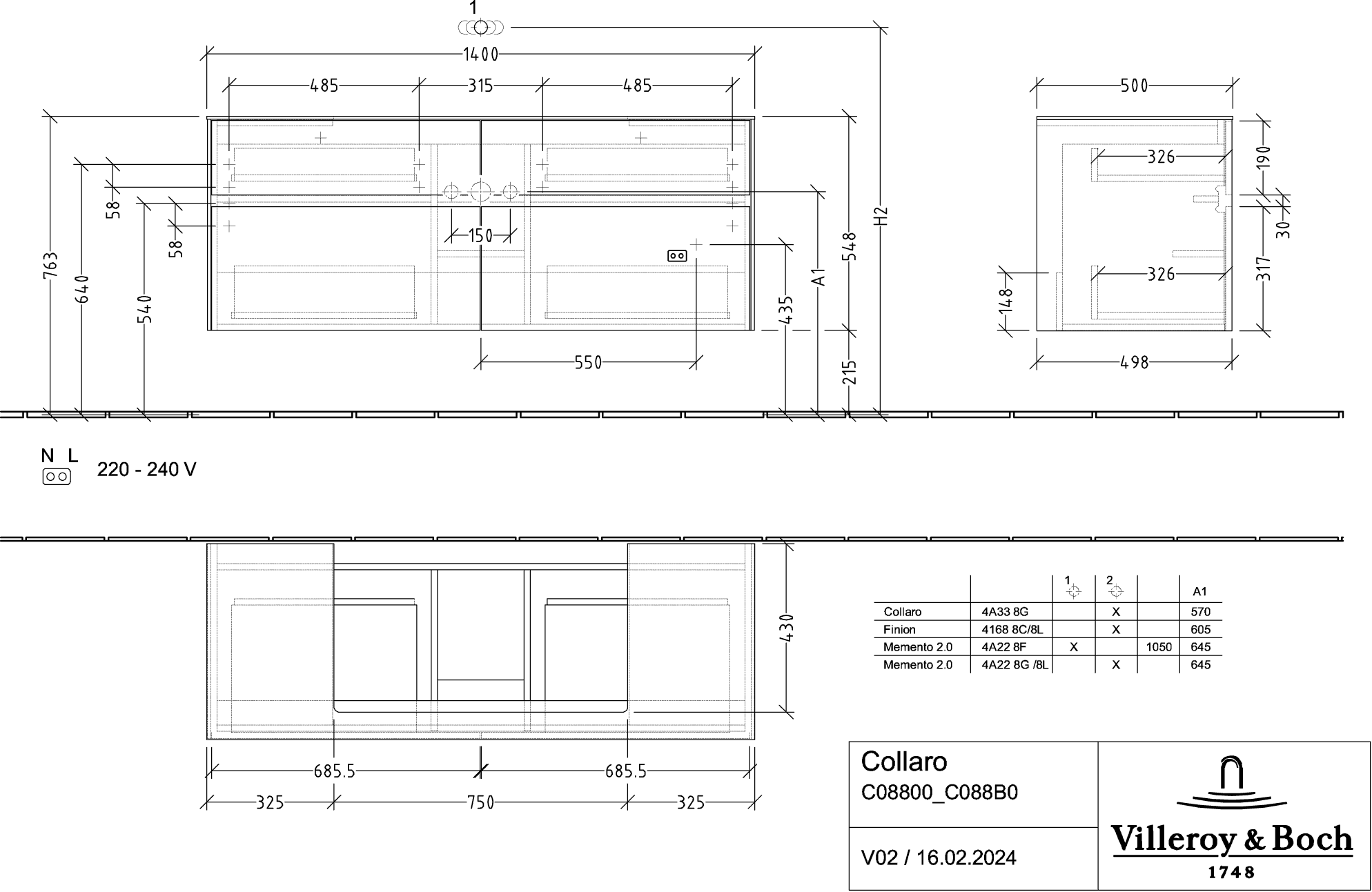 Collaro Wastafelonderkast 1400x548x500mm C08800DH Villeroy & Boch