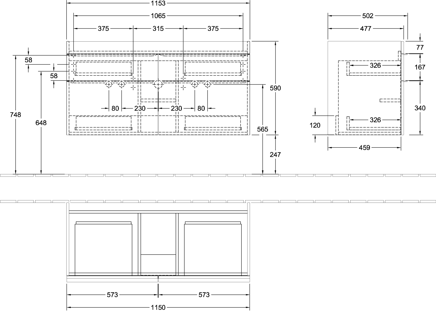 - Breedte: 1153 mm