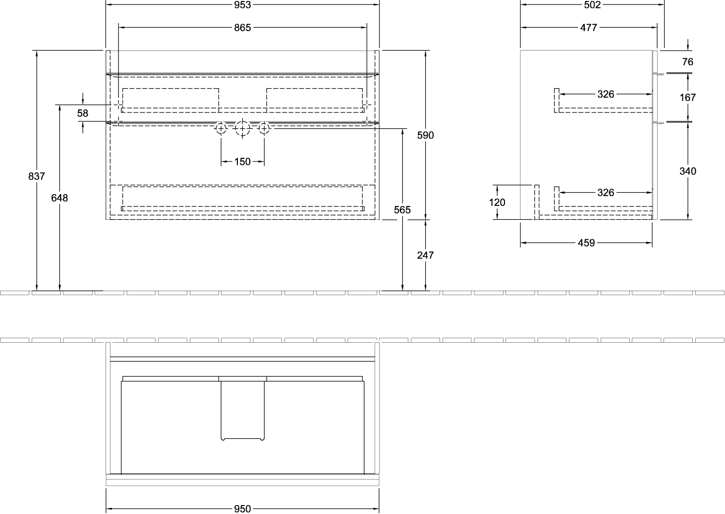 Venticello wastafelonderbouw 953x590x502mm glossy white 2xla Villeroy & Boch