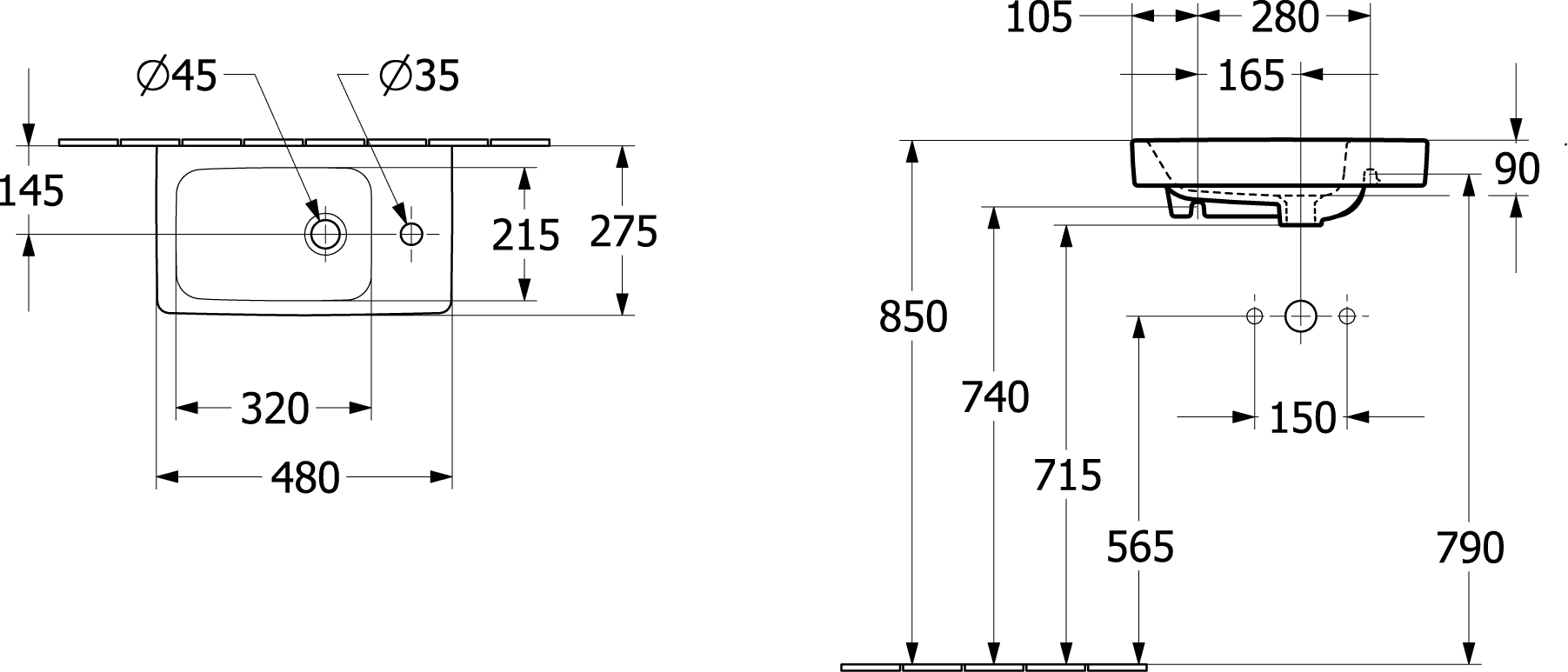 Architectura fontein 480x275mm wit met kraangat rechts + overloop Villeroy & Boch