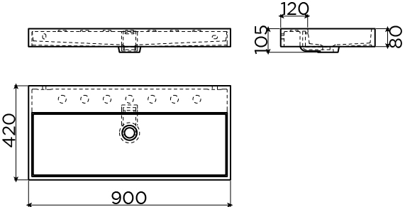 Wash Me wastafel 900x420x80mm wit voorbewerkte kraaangaten excl. plug Clou