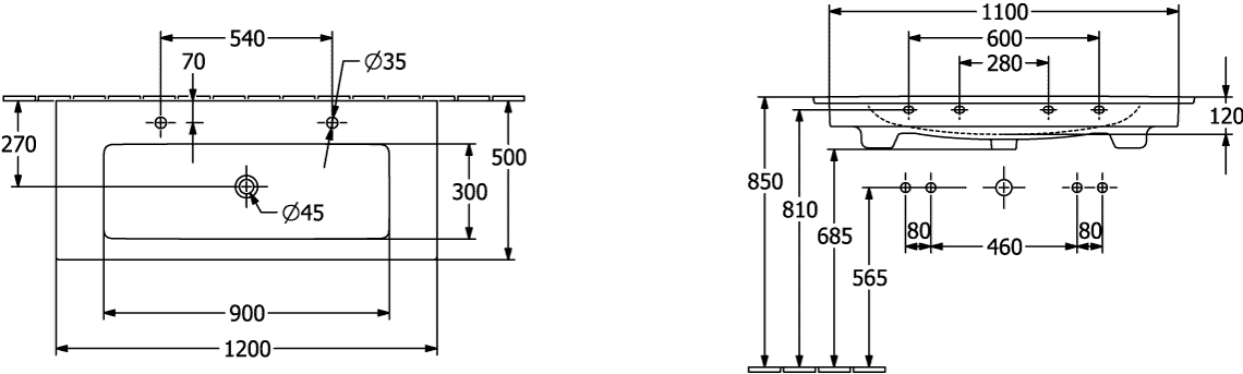 Venticello meubelwastafel 1200x500mm wit 2xkraangat 1xoverl. Villeroy & Boch