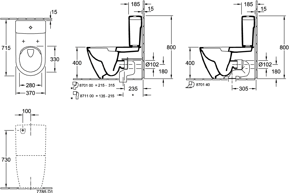 Subway 2.0 closet PK. tbv duoblok Wit Alpin C+ diepspoel DF incl. bevestiging (excl. zitting / reservoir) Villeroy & Boch