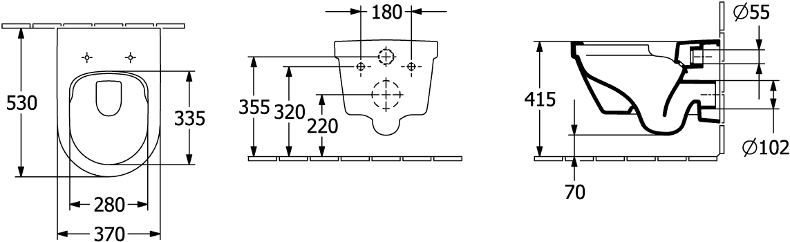 - Hartmaat bevestiging wandcloset: 180 mm