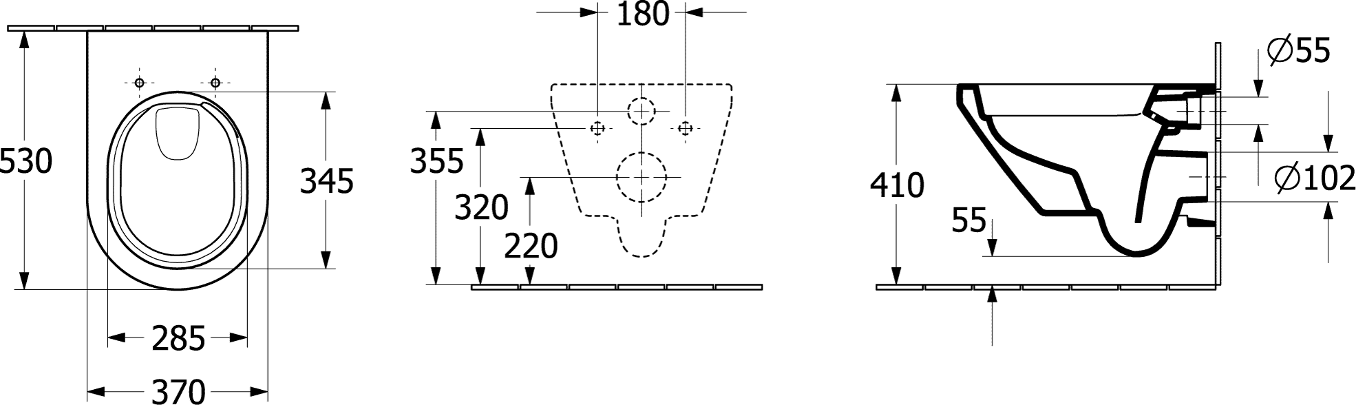 Wandcloset 530mm Architectura diepspoel 5684 Twistflush wit Alpin AntiBAc C+ (excl. zitting) Villeroy & Boch