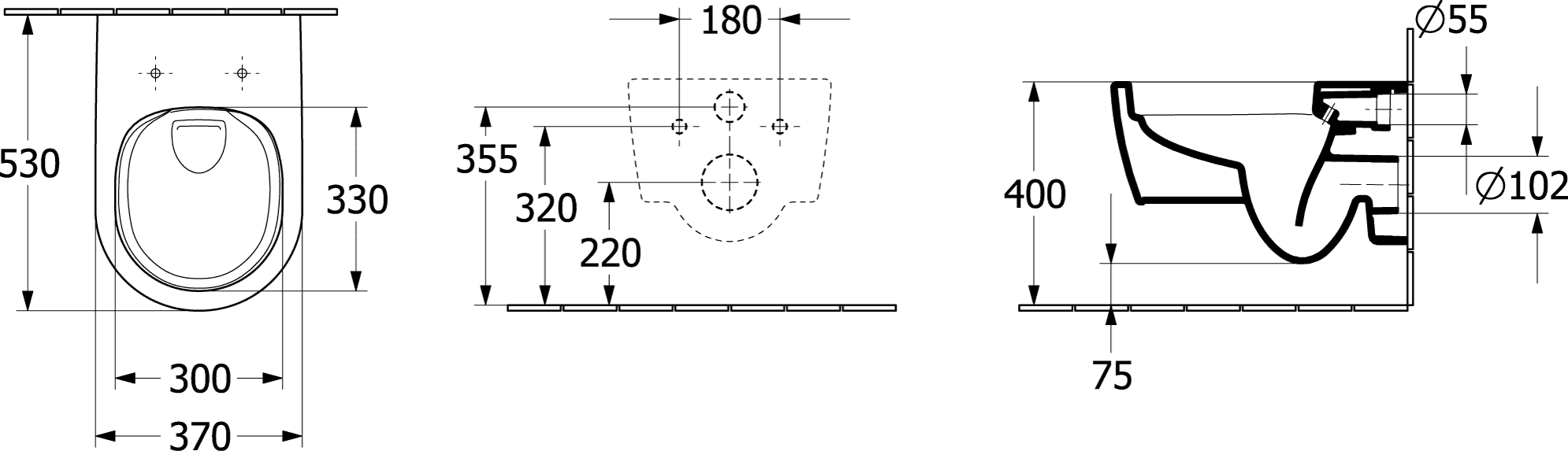 Wandcloset combipack SKYLA 5656 diepspoel 530mm Twistflush Stone White C+ incl. zitting softclose Villeroy & Boch