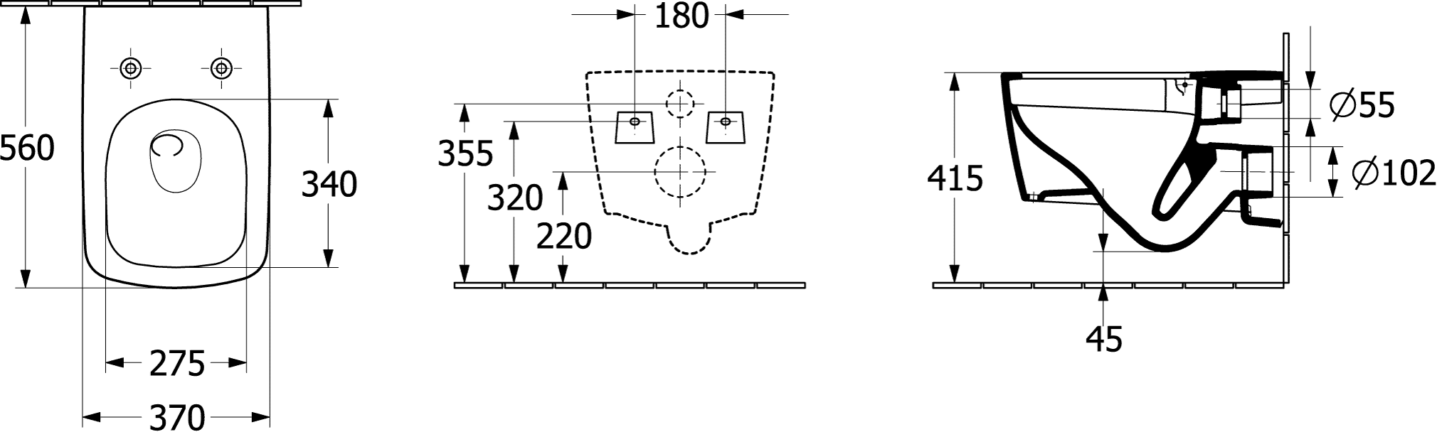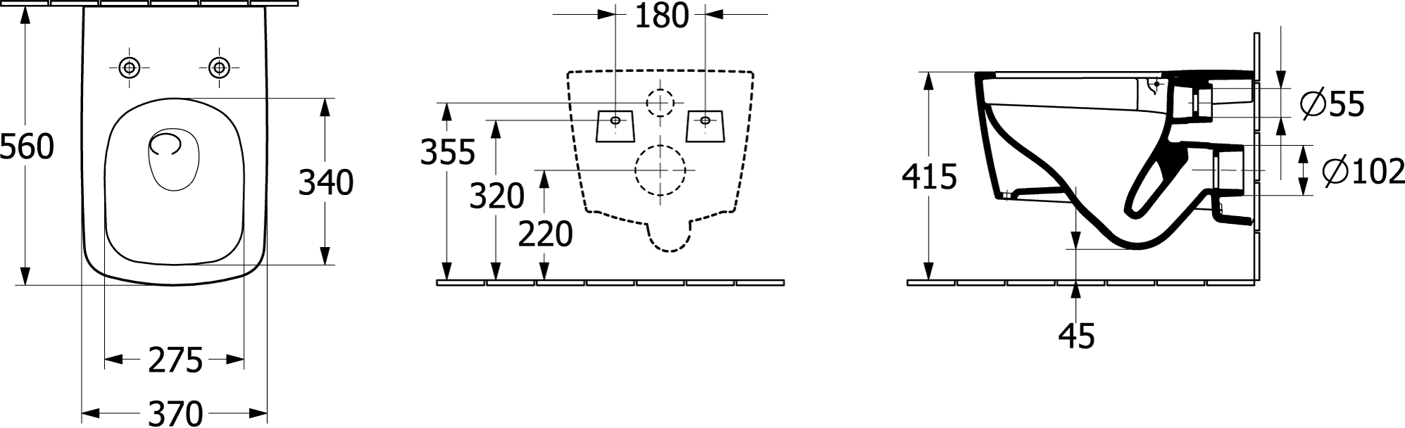 - Hartmaat bevestiging wandcloset: 180 mm
