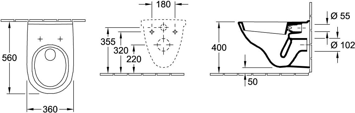 Wandcloset 560mm O.novo wit C+ diepspoel (excl. zitting) Villeroy & Boch