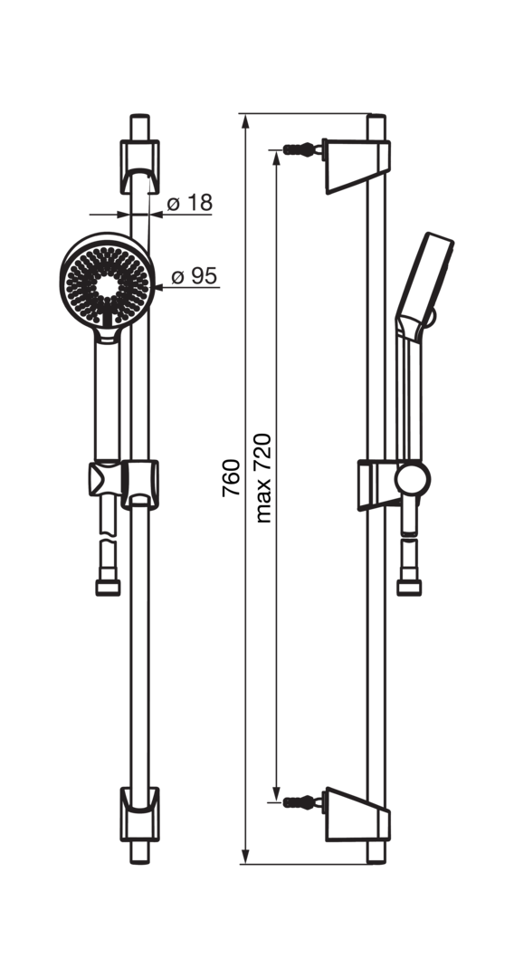 - Lengte glijstang: 764 mm