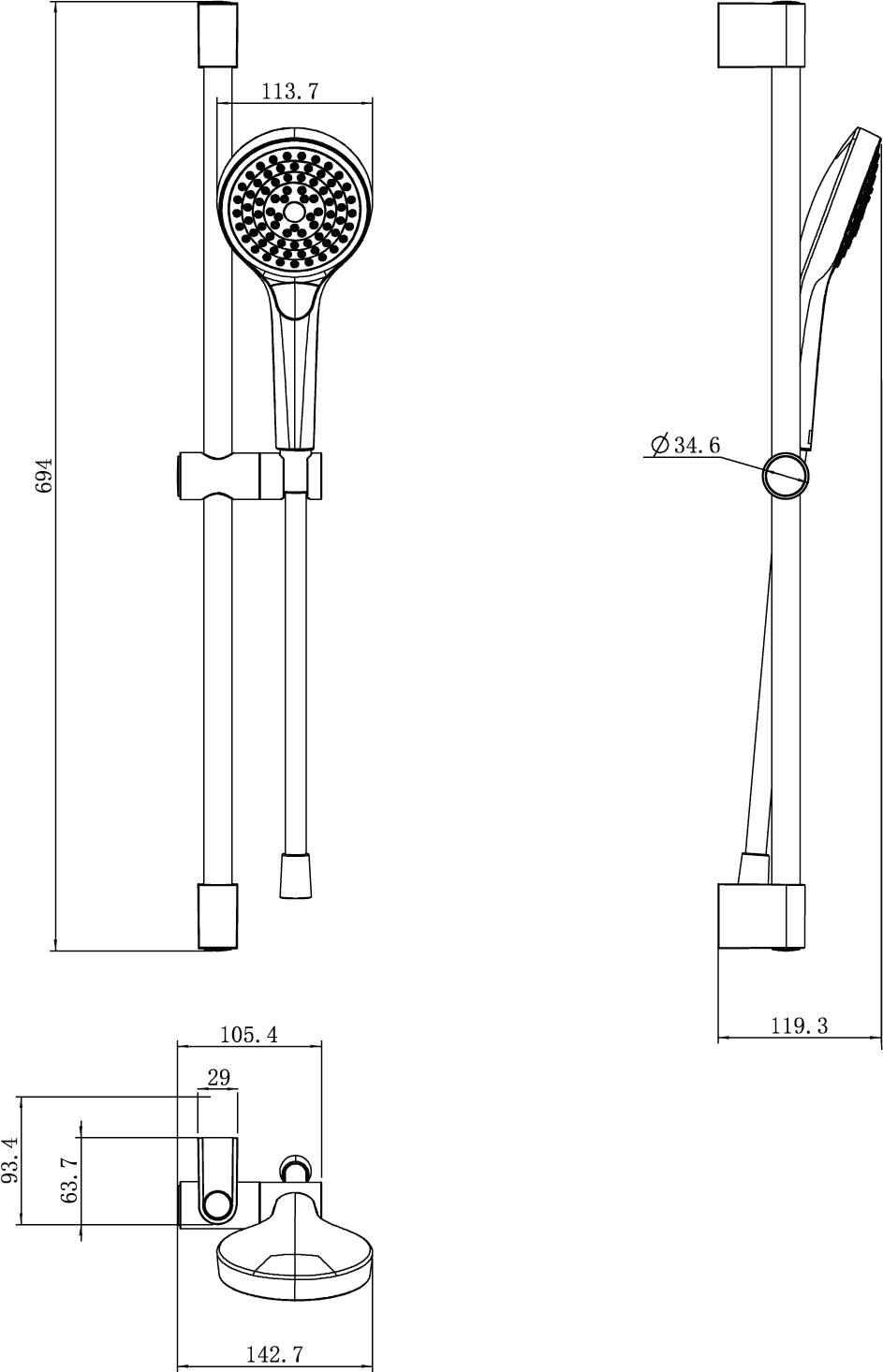 Douchegarnituur m 3 functi Verve Showers Brushed Nickel Matt Villeroy & Boch