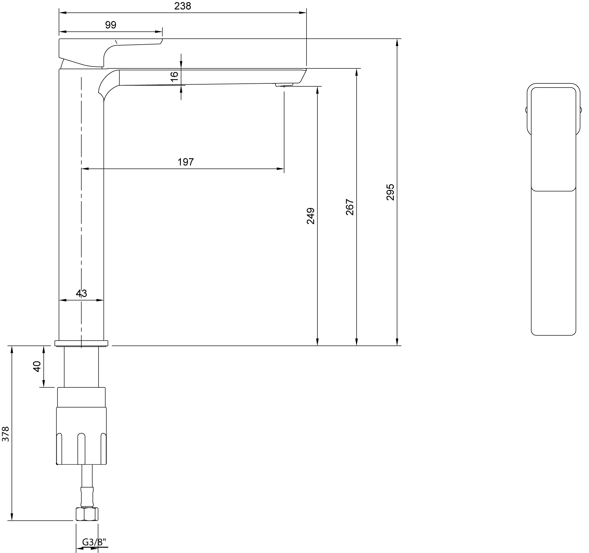 - Opbouwhoogte onderkant kraanmondstuk: 246 mm
