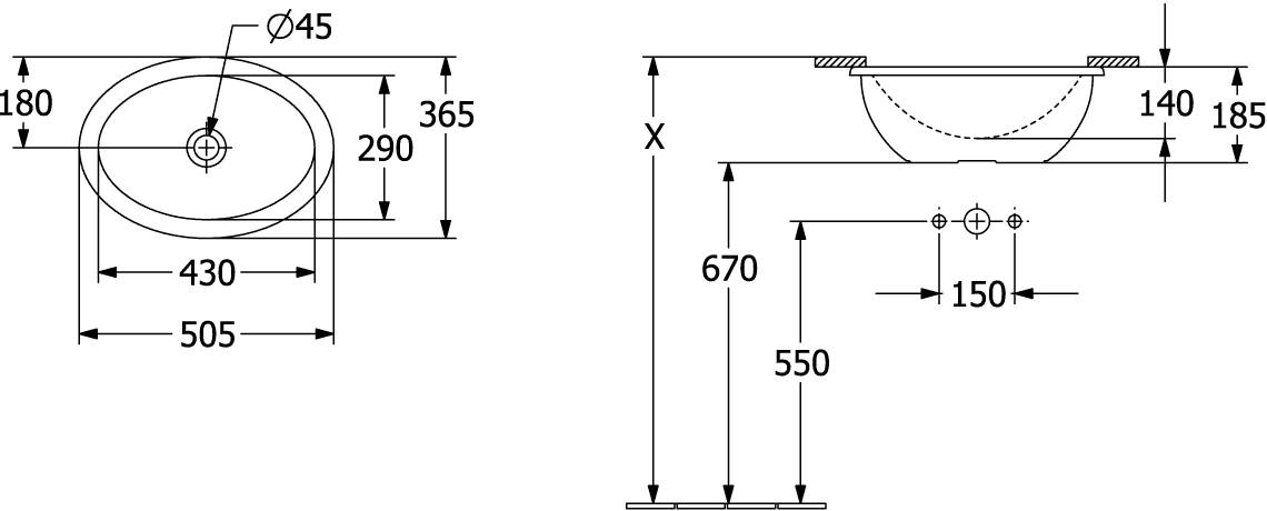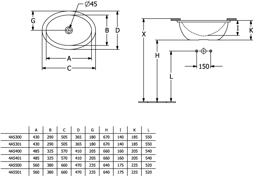 Loop & Friends Onderbouwwastafel 430x285mm 4A5301R1 Villeroy & Boch
