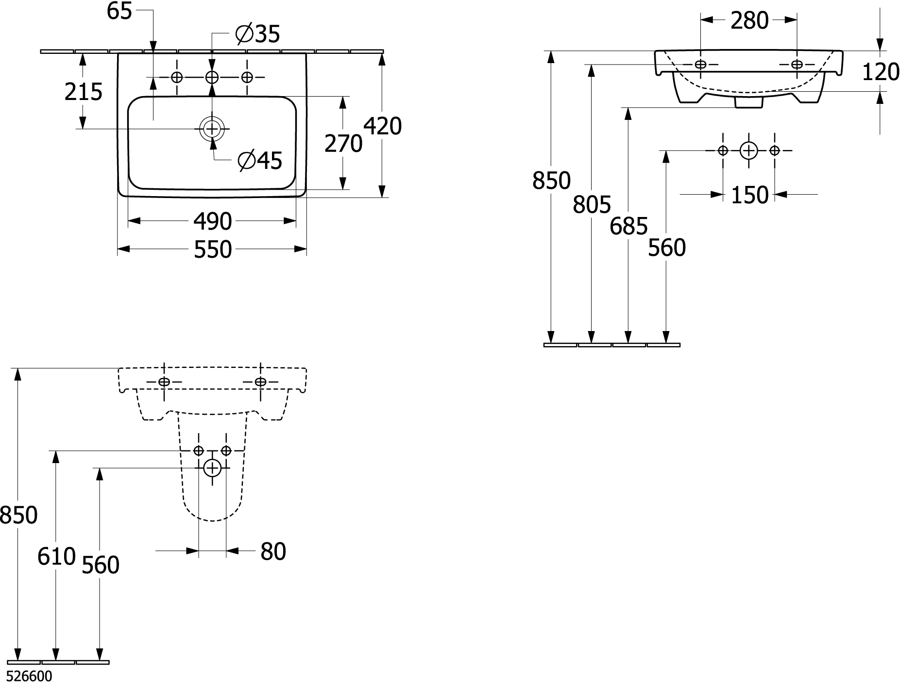 Wastafel Architectura 550x420mm W.Alp AB CeramicPlus 4A8755T2 Villeroy & Boch