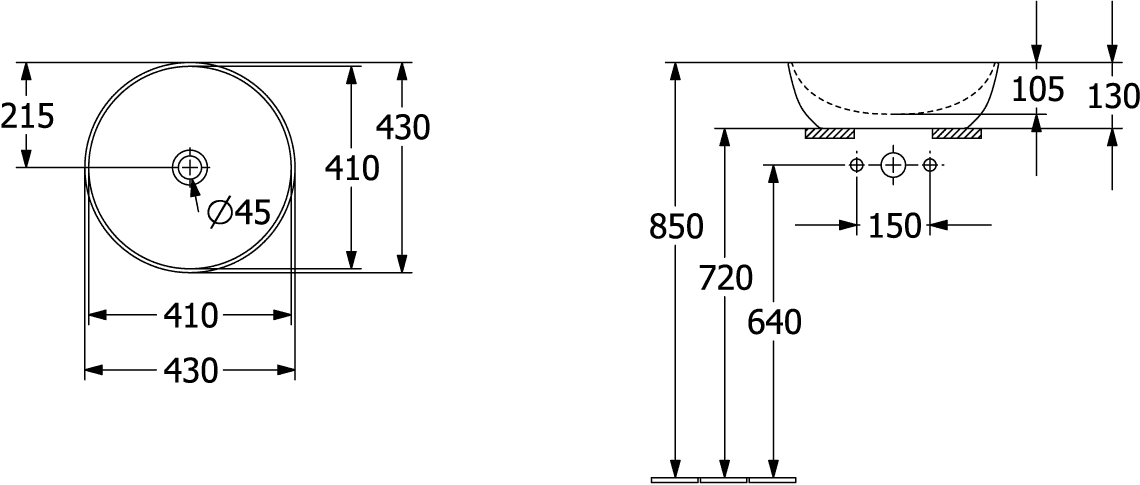 Opzetwaskom rond ARTIS Ø430mm kleur buitenzijde Stone white C+ binnenzijde wit zonder overloop Villeroy & Boch