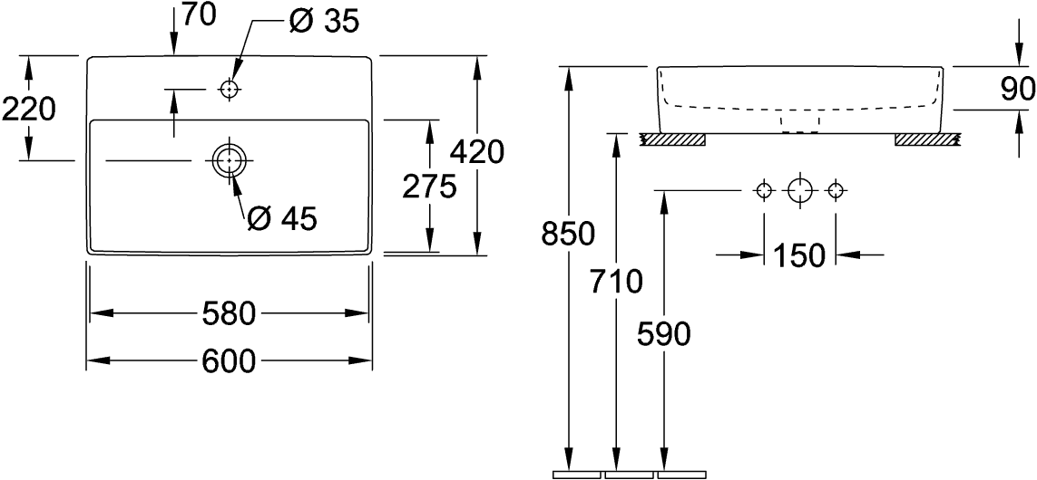 Opzetwastafel Memento 2.0 600x420mm 4A0760R1 Villeroy & Boch