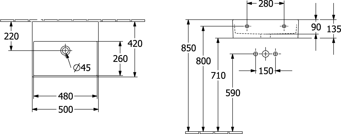 - Aantal kraangaten per wasbak: 0