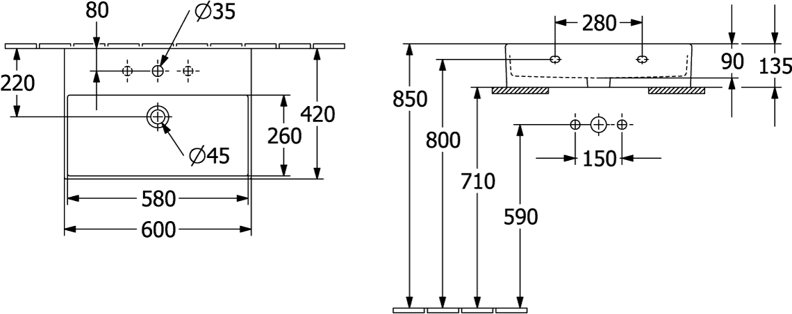 Wastafel Memento 2.0 600x420mm 4A226G01 Villeroy & Boch