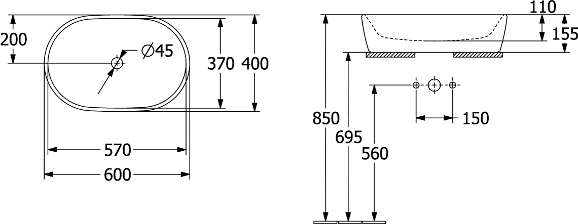 Architectura Opzetwastafel 600x400mm 5A266101 Villeroy & Boch