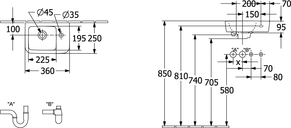 - Met afvoerplug en geïntegreerde overstort: Nee