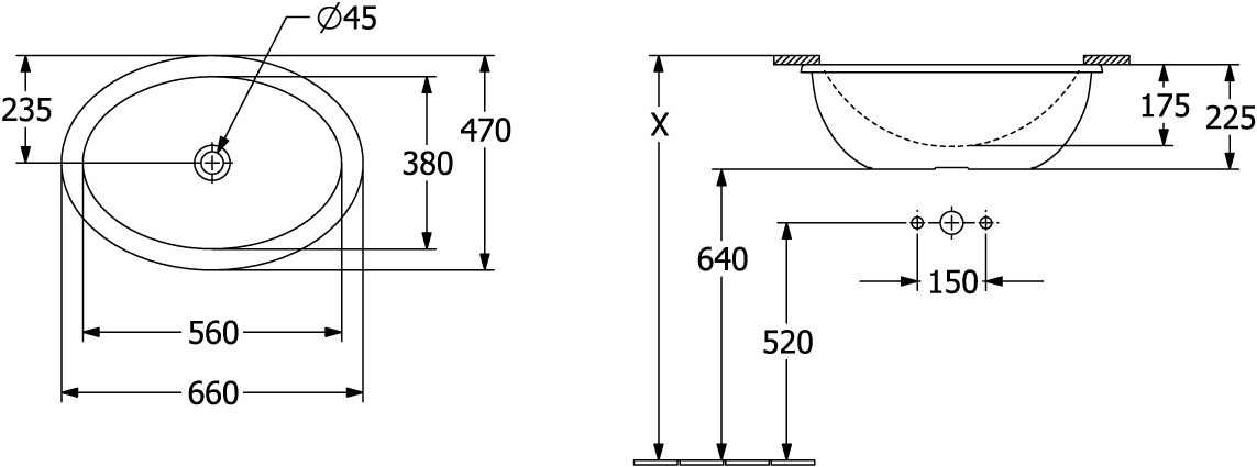 Loop & Friends Onderbouwwastafel 570x380mm 4A5501R1 Villeroy & Boch