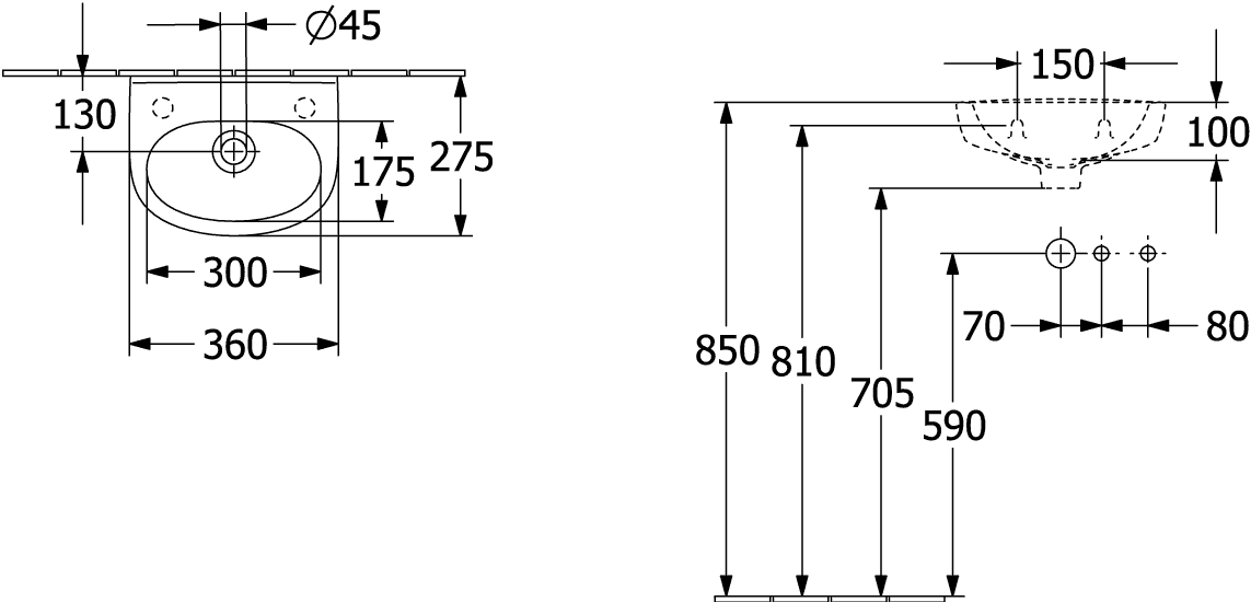 - Met afvoerplug en geïntegreerde overstort: Nee