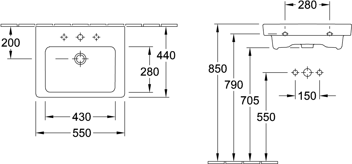 Subway 2.0 meubelwastafel 550x440mm wit met kraangat + overloop Villeroy & Boch