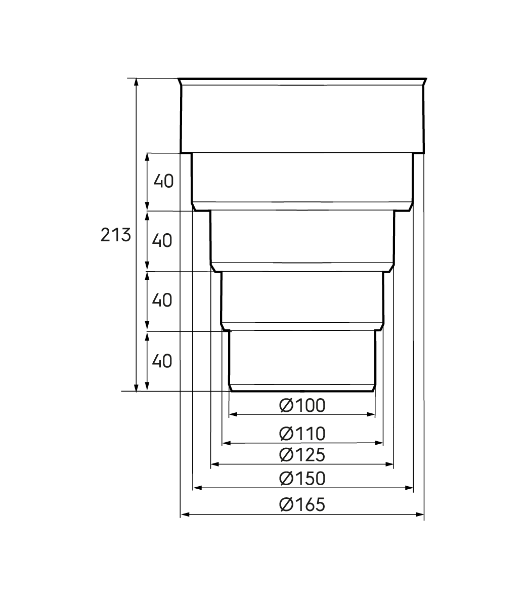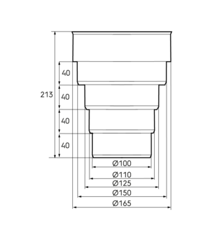 - Nom. kanaaldiameter aansluiting 1: 100 mm