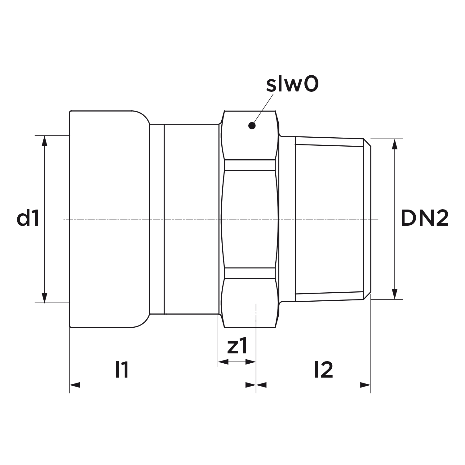 - Uitwendige buisdiameter aansluiting 1: 21,3 mm
