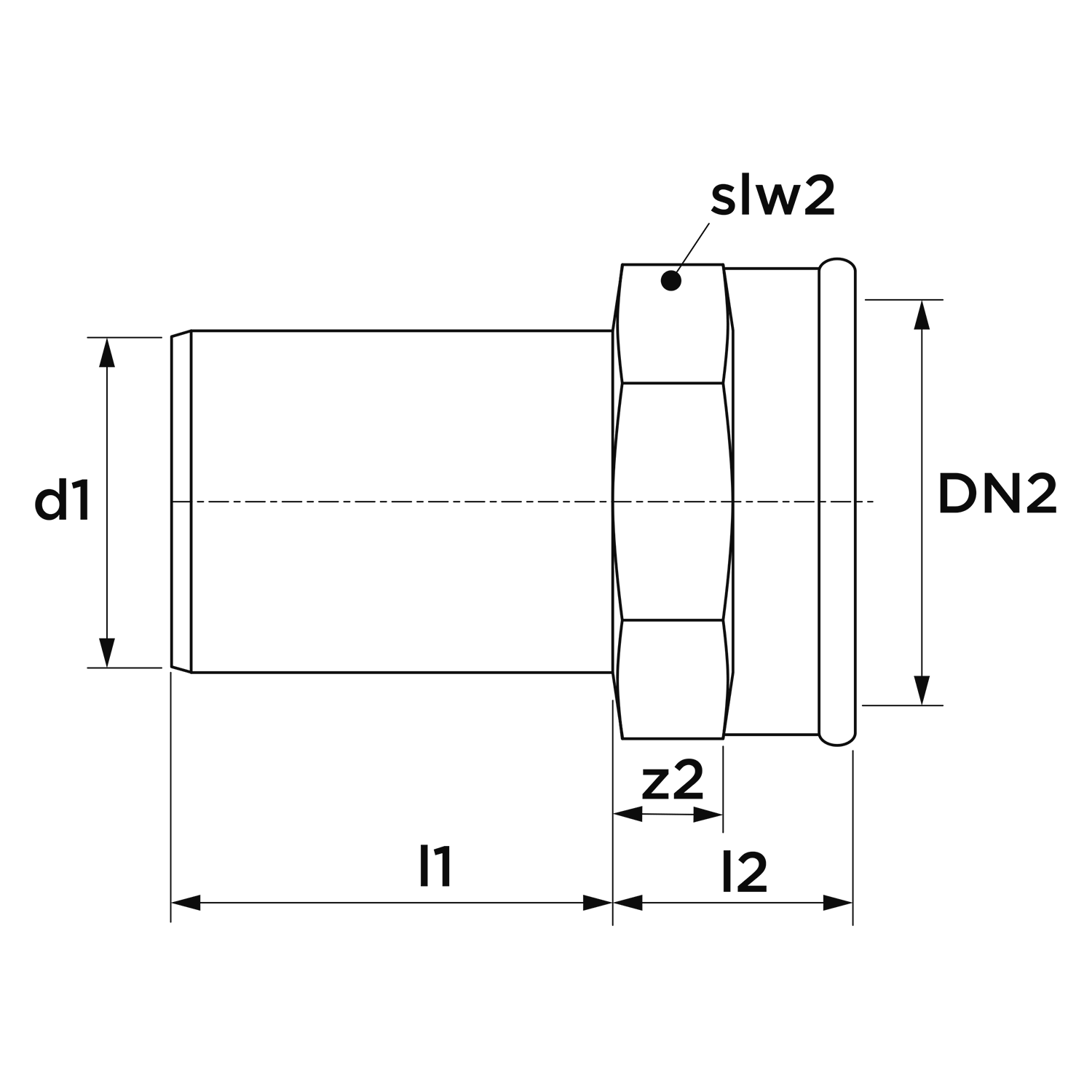 • Uitwendige buisdiameter aansluiting 2: 21,3 mm